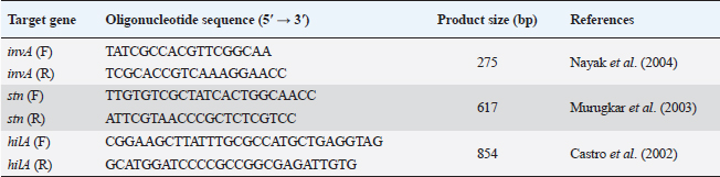 ABSTRACTBackground: Salmonella-related foodborne illnesses are a significant public health concern. Naturally, antibacterial food components have been shown to limit microbial growth proliferation with various degrees of efficacy. Aims: To examine the occurrence, microbial load, and effect of apple vinegar on Salmonella serovars in beef and beef products. Methods: 150 beef and beef products were collected between March and May 2022. Total viable count (TVC), Enterobacteriaceae count (ENT), isolation and identification of Salmonella, and their virulence factors detection by multiplex PCR were determined, and an experimental study of the effect of natural apple vinegar marination on Salmonella spp. Results: TVC was higher in meatballs (3.32 × 106 ± 1.07 × 106) while beef burgers (4.22 × 103 ± 0.71 × 103) had the highest ENT. Concerning the prevalence of Salmonella spp., meatball (46.7%) and beef burger (25.3%) samples were the highest contamination rate. The common serovars detected were Salmonella typhimurium (6%), Salmonella enteritidis (6%), and Salmonella infantis (4%). Based on the results of PCR, 12, 11, and 11 out of 18 samples of Salmonella isolates possess hila, stn, and invA genes. By immersing the inoculated steak meat in apple vinegar at different concentrations (50%, 70%, and 100%), the initial populations of the Salmonella strains after 12 hours were reduced to 0.38 × 102 ± 0.05 × 102 log CFU/ml; however, after 48 hours become the most reduction (0.31 × 102 ± 0.07 × 102 log CFU/ml) at a concentration of 100% apple vinegar. An enhancement in the sensory attributes was noted across all concentrations. Conclusion: The consumed beef and beef products are contaminated with pathogenic bacteria such as Salmonella spp. Marinades made using apple vinegar concentrations of 50%, 75%, and 100% effectively minimized the prevalence of artificially inoculated Salmonella and extended the shelf life of preserved refrigerated beef products to 48 hours. Keywords: Beef products, Salmonella, Apple vinegar, Foodborne diseases. IntroductionMeat has a high nutritional value and is nutrient-dense due to the protein, fat, vitamins, and minerals it contains, all of which are essential for a healthy diet. Consumer awareness has elevated the importance of quality in meat and meat products (Fencioglu et al., 2022). Because of its high protein and moisture content, meat is one of the most perishable foods during preparation or storage. It is subject to spoiling for various reasons, including microbial contamination (Lei et al., 2023). Extensive study has been conducted into multiple processing technologies as the food sector works to ensure food safety in the face of dangerous bacteria such as Salmonella spp. (Cap et al., 2020). One of the major significant foodborne illnesses that can cause serious human infections and substantial economic losses worldwide is Salmonella spp. Their monitoring at several stages, especially in processed, unprocessed, and ready-to-eat products, acts as a benchmark for consumer safety and is an essential tool for putting actual food safety systems in place (Tîrziu et al., 2020). Interest has shifted in recent trends toward the application of various usual alternatives to lengthen the duration of preservation of meat and its products and increase the storage life, especially with a significant increase in the manufacture of meat products as well as their role in providing the desired flavor and taste, many studies have been conducted to discover new ways to extend the period of preservation of meat and its products while avoiding chemical additives (Yagnik et al., 2018; Sengun et al., 2019; Al-Hadidy et al., 2023). Apple vinegar is one of the most well-known chemicals since it includes bioactive components with antimicrobial activities (Bhebhe et al., 2022). According to Alagoz et al. (2020), the fermented product apple vinegar is classified as a useful food because it contains compounds and nutrients such as minerals and vitamins as well as having an inhibitory effect on many microorganisms by preventing the transport of nutrients through their cell membrane. In meat marinated in acidic marinades, a number of factors, such as acid type, acid concentration, temperature, marinating, storage duration, and initial pathogen population, may affect the growth, survival, or inactivation of Salmonella (Lytou et al., 2019). This research aimed to investigate the microbiological quality of beef and its products and the effect of apple vinegar marination on beef-borne Salmonella. Materials and MethodsSample collection and preparationDuring March-May 2022, a total of 150 beef and beef products samples, including chilled beef meats, basterma, hot dogs, meatballs, and beef burgers (30 for each), were collected from various shops, packed, identified, and transferred to the laboratory as soon as possible in an icebox to assess the microbial load and discovery of beef-borne Salmonella holding them. Samples weighing 25 g were placed aseptically into a sterile stomacher bag, which was then filled with 225 ml of 0.1% sterile buffer peptone water. The stomacher was then homogenized for 2 minutes at room temperature (Stomacher® 400 Circulator, Seward, Ltd., UK) to achieve a 10−1 dilution. In sterile distilled water, homogenized microbial samples were serially diluted. Every diluted 1 ml sample was spread out evenly on different plates. Microbiological analysisThe plate method was used to conduct the microbiological assessment per the recognized food microbiology guidelines. Total viable count (TVC) was assessed on nutritional agar (CM0003B, Oxoid) following ISO 4833-1 (2013). On MacConkey agar (CM0115, Oxoid), the Enterobacteriaceae count (ENT) was determined following ISO 21528-2 (2017). Each analysis was done in triplicate, and standardized plate count methodologies were used to calculate plate counts and convert them to log10 CFU values (Vanderzant and Splittstoesser, 1992). Salmo