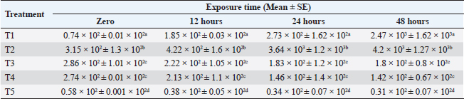 Table 6. Effect of apple vinegar on Salmonella count after different exposure times.