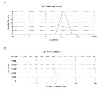 Fig. 2. Particle size distribution and ζ -potential measurements of AgNPs-FG. A) Particle size distribution of AgNPs-FG. B) ζ-Potential of AgNPs-FG. Each measurement was the average of three different records.
