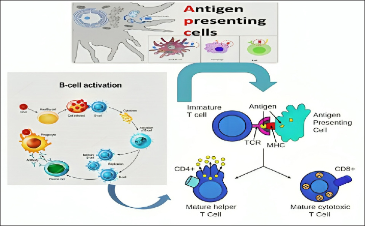 Fig. 1. Primary and Secondary lymphoid organs. Enmeshed in the immune complex, mature B and T cells are transferred from primary or lymphoid tissue for the development stage, termed immune movement or immune peripheralization. Table 1. The nonspecific host defense mechanisms.