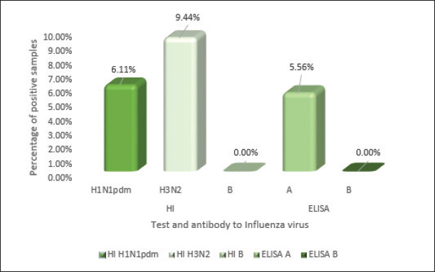 Fig. 1. Serological examination of serum samples in the HI assay and ELISA.