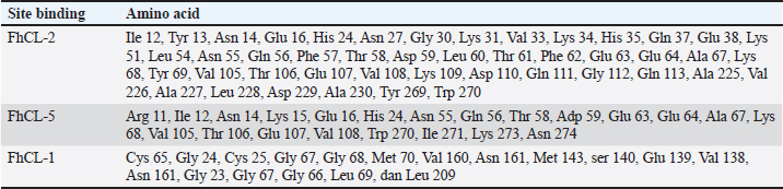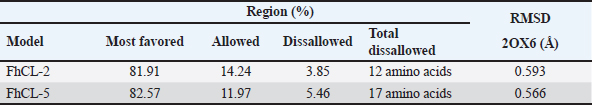 Fig. 1. Results of FhCL-2 and FhCL-5 modeling of the template (pdb id. 2OX6).