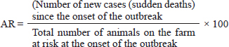 ABSTRACTBackground: Sudden death is defined as an unexpected death occurring with no observed antecedent clinical signs. Aim: The current study was performed to notice the tangible causes of sudden death among 51 out of 340 she-camels on a private farm in the eastern region of El Khafgi, Saudi Arabia. Methods: A retrospective cohort study design was conducted to investigate the sudden death of camels through microscopic examination of fecal matter to identify the gastrointestinal parasites, analysis of whole blood thin films to diagnose blood parasites, blood culturing to recognize bacterial infection as Pasteurella multicida, and macroscopic postmortem examination to identify the gastrointestinal adult worm. The quantity and composition of feed were also analyzed. Afterward, a commercial multiscreen Ag-ELISA kit technique determined the toxins of Clostridium perfringens (C. perfringens). Results: The results revealed that the incidence rate of sudden death was 15%. The sudden death occurred due to C. perfringens enterotoxins detected in the rumen, intestinal content, and intestinal wall. The enterotoxins and Alpha toxins were noticed, but the other toxin types, including Beta and Epsilon, could not be detected. All C. perfringens toxins were discovered to be negative in fecal matter. A significant association was reported between sudden death, she-camels age, and feeding habits as risk factors (p=0.020 and 0.028, respectively). Risk factor assessment by relative risk (RR) revealed that the odds of RR of sudden death occurring among she-camels aged over two years were higher than those less than two years (2.24 CI 95%, 1.093–4.591). Furthermore, the odds RR of sudden death occurring due to exposure of she-camels to a concentrated ration of 18% were higher twice than those not exposed (2.346 CI 95%, 1.039–5.296). Conclusion: Clostridium perfringens enterotoxaemia should be listed as a cause of sudden death in camels and the alteration in diet with 18% concentration feed changes the intestinal environment, which leads to C. perfringens proliferating and yielding potent toxins. More observations and interferences like regular immunization are recommended to reduce the disease and increase the awareness of the farmers of the importance of risk factors. Keywords: Camels, Clostridium perfringens, Enterotoxins, Risk factors, Sudden death. IntroductionThe desert is considered impoverished, so one of the animals that have adapted to live there is the desert ship one-humped camel (Camelus dromedarius). These camels are considered the primary means of transportation in Saharan and sub-Saharan countries and the primary source of leather production for humans. Moreover, their meat and milk contain less cholesterol and fat than other animal milk and meat, making them safe for people allergic to bovine milk (Sheet et al., 2021). Camels are reservoir hosts for blood parasites such as Trypanosoma evansi and gastrointestinal helminths such as trematodes, tapeworms, or nematodes (El-Seify et al., 2021). Moreover, the camels in Asia and Africa harbor several hemophagous ectoparasites, such as ticks and fleas, which eventually may transmit zoonotic viral and bacterial pathogens (Sazmand et al., 2019). Multiple causes lead to unexplained mortalities in camels, including endoparasite infection, either blood or gastrointestinal parasites, which cause catarrhal and hemorrhagic gastro-enteritis, followed by clostridial diseases including enterotoxaemia, then monensin poisoning, chronic copper poisoning, pneumonia, and bloat (Bouragba et al., 2020; Esmaeel et al., 2021). The most common collective reason for death recorded in the camel farm is “Heyam” syndrome (53.3%) (Kaaboub et al., 2021). The most significant Gram-positive anaerobe bacterium is Clostridium perfringens (C. perfringens). The sporulation of C. perfringens allows it to persist in fecal matter, soil, and under different environmental conditions for many years, so controlling disease transmission becomes difficult. This organism is ranked as a biosafety level II organism. Therefore, careful handling according to appropriate biosafety standards of suspected infected samples with C. perfringens is a potential protective factor through personal protective equipment (Naureen et al., 2022). Clostridium perfringens is a natural intestinal inhabitant among humans and animals, including sheep, goats, cattle, and camels. Whenever a low bacterial count produces a minor quantity of toxins removed rapidly from the gut by normal peristalsis, which leads to no damage or illness. A large number of toxins produced by C. perfringens are considered food-borne gastrointestinal food poisoning and edaphic zoonotic diseases due to the corruption of meat products with the intestinal matter and fecal matter of infected hosts (Ghoneim et al., 2017). Clostridium perfringens is classified into seven toxin types (A, B, C, D, E, F, and G) according to the production of four significant toxins, namely alpha (CPA), beta (CPB), epsilon (ETX), and iota (ITX) (Kiu et al., 2018). The CPA is released from all seven- toxin types, the CPB is produced from both B and C types, ETX from C and D types, and type E yields ITX (Alsaab et al., 2021). The prevalence in Saudi Arabia by using the ELISA procedure to notice Clostridium perfringens enterotoxaemia types is 67.2% for the main types: C. perfringens type A, followed by type D (16.4%), then type B (13.4%), and type C (3%). Still, the prevalence of enterotoxaemia among different hosts is included that; cows (66.7%), small ruminate goats, and sheep (44.6%) and (39.5%), respectively, but camels (33.3%) (Omer et al., 2020). The pathogenesis of C. perfringens enterotoxaemia is the production of toxins through the enormous explosion of this occupant bacterium in the intestinal milieu (Finnie et al., 2020). Subsequently, these toxins penetrate the systemic circulation due to increased intestinal permeability, leading to the entero-toxemic
