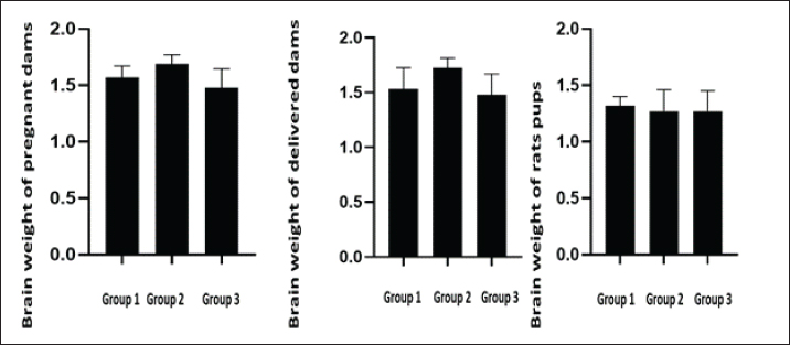 Fig. 3. The depicted figure represented relative brain to body weight ratio of pregnant dams, delivered rats and rat pups.