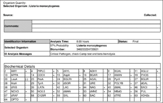 Fig. 2. Identification of LM by analyzer VITEK 2 GP card.