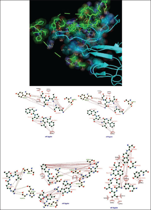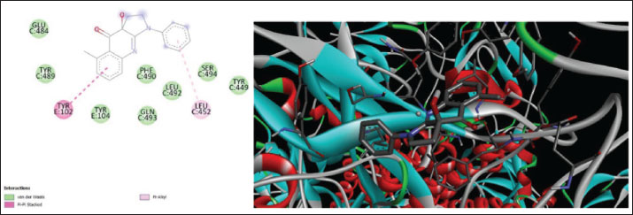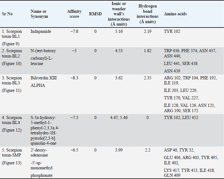 Table 2. Protein–ligand docking results of “PyRx python prescription 0.8” and analyzed through “BIOVIA-Discovery studios visualizer v.21.1.0.20298”: Corona spike protein (PDB ID: 7R40) as target and various toxins as ligand