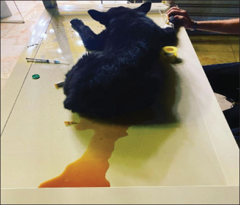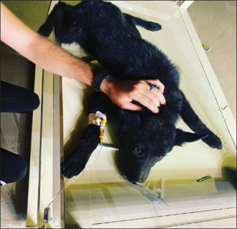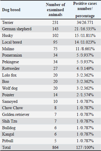 Fig. 4. Dog suffer from dehydration, sunken eyes, and anorexia. Table 4. Distribution of positive cases according to clinical signs.