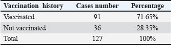 Decaro et al., (2020) reported that the failure of canine parvovirus disease eradication was mainly caused by immunization failures involving the presence of maternally-derived antibodies interfering titers, non-responder presence, and virus virulence. Meanwhile, the role of the canine parvovirus variants in immunization failures has been widely discussed. These treatment results resemble the results mentioned by Mylonakis et al. (2016), who reported that the recovery percentage of dogs after treatment in a veterinary hospital were (78.3%). Also Horecka et al. (2020) recorded that the overall survival rate for dogs during the 11.5-year period of study was 86.6%, with the increasing possibility of survival rate to 96.7% after 5 days of treatment. Dogs with low-weight and male sex were considered as a high risk factor for death, while age was not an important factor in the infection. Mahaprabhu et al. (2021) reported a higher rate of recovery in vaccinated dogs than in unvaccinated dogs. ConclusionIn conclusion, canine parvovirus was circulating in Baghdad city, and unvaccinated puppies younger than 6 months were mostly susceptible to the virus. Our recommendations include optimizing vaccination programs for parvovirus and identifying and treating infected dogs to reduce environmental contamination. AcknowledgmentsFor the University of Fallujah. Conflict of interestThe authors declare no conflict of interest. FundingNo funding. Authors’ contributionsKhalid Ismael Oleiwi: Practical work. Mohammed Ali Hussein: Statistical analysis. Omar Attalla Fahad: Writing and editing. Sura Osamah Abdulrazzaq: Sampling. Data availabilityData are available upon request. ReferencesAhmed, A.F., Odisho, S.M. and Karim, A.Z. 2012. Detection of canine parvovirus in Baghdad city by PCR. In: Proceedings of the eleventh veterinary scientific conference, 95–98. Al-Bayati, H.A. Odishosh, M. and Majeed, H.A. 2010. Detection of canine parvovirus in Iraq using a rapid antigen test kit and haemagglutination –inhibition test. Al Anbar J. Vet. Sci. 3, 17–23. Bhattacharjee, PP. K. Rahman, MM. S. Sarkar, R.R. and Chakrabartty, A. 2021. Prevalence and associated risk factors of canine parvovirus and canine influenza virus infections in pet dogs in Dhaka district of Bangladesh. J. Vet. Med. OH. Res. 3(1), 119–128. Cavalli, A., Marinaro, M., Desario, C., Corrente, M., Camero, M. and Buonavoglia, C. 2018. In vitro virucidal activity of sodium hypochlorite against canine parvovirus type 2. Epi. and Inf. J. 146, 2011–2013. Decaro, N., Buonavoglia, G. and Barrs, V.R. 2020. Canine parvovirus vaccination and immunization failures: are we far from disease eradication? Vet. Micro.247:108760. Deka, D., Phukan, A. and Sarma, D.K. 2013. Epidemiology of parvovirus and coronavirus infections in dogs in Assam. Indian Vet. J. 90, 49–51. Esfandiari, J. and Klingeborn, B. 2000. A comparative study of new rapid and one– step test for the detection of parvovirus in feces from dogs, cats, and mink. J. Vet. Med. Infect. Dis., Vet. Public Hlth. 47(2): 145–153. 16. Geetha, M. and Selvaraju, G. 2023. Canine parvoviral enteritis and its determinants: an epidemiological analysis. Indian J. of animal res. 57(2): 225–230. Gombac, M., Svara, T., Tadic, M. and Pogacnic, M. 2008. Retrospective study of canine parvoviruses in Slovenia. Case Report. Slovenia Vet. Res. 45(2), 73–78. Greene, C.E. 2012. Infectious diseases of the dog and cat. 4th ed. St. Louis, MO: Saunders, pp. 67–73. Horecka, K., Poerter, S., Amirian, E.S. and Jefferson, E. 2020. A decade of treatment of canine parvovirus in animal shelters: a retrospective study. Animals J.10, 939–947. Kalli, I. Leontides, L.S. Mylonakis, M.E. Adamama-Moraitou, K. Rallis, T. and Koutinas, A.F. 2010. Factors affecting the occurrence, duration of hospitalization, and final outcome in canine parvovirus infection. Res. Vet. Sci. 89(2), 174–178. Khare, DDS. Gupta, DDK. Shukla, PPC. Das, G., Meena, N.S. and Ravi, K. 2020. Clinical and haemato-biochemical changes in canine parvovirus infection. J. Pharm. Phytochem. 9(4), 1601–1604. Mahaprabhu, R., Pazhanivel, N., Rao, G.V., Raj, G.D. and Parthiban, M. 2021. Prevalence of canine parvoviral enteritis in vaccinated and unvaccinated puppies in and around Chennai, Tamil Nadu, India. Pharm. Innov. J. 10(9), 560–563. Mazzaferro, E.M. 2020. Update on canine parvoviral enteritis. Small Anim. 50, 1307–1325 McCaw, D.L. and Hoskins, J.D. 2006. Canine viral enteritis. In: Green CE, editor. Infectious diseases of the dog and cat. 4th ed. St. Louis, MO: Saunders, pp. 63–73. Mia, M.M. and Hasan, M. 2021. Update on canine parvovirus infection: a review from the literature. Vet. Sci. Res. J. 7(2), 92–100. Mildbrand, M.M., Teramoto, Y.A., Collins, J.K., Mathys, A. and Winstin, S. 1984. Rapid detection of Canine parvovirus in feces using monoclonal antibodies and enzyme. link immuno sorbent assay. Am J. Vet. Res., 45 (11): 2281–2284. 15. Mosallanejad, B., Najaf abadi, G.M. and Avizeh, R. 2008. The first report of concurrent detection of canine parvovirus and coronavirus in diarrheic dogs of Iran. Iranian J. Vet. Res., 9(3), 284–286. 17. Mylonakis, M., Kalli, I. and Rallis, T. 2016. Canine parvoviral enteritis: an update on the clinical diagnosis, treatment, and prevention. Vet. Med. Res. Rep. 7, 91–100. Nahat, F.W., Rahman, M.S., Sarker, R., Hasan, M.K., Hasan, A.K., Akter, L and Islam, M.A. 2015. Prevalence of canine parvo virus infection in street dogs using a rapid antigen detection kit. Res. in Agr. Livestock and Fisheries 2, 459–464. Nizami, T.A., Al-Sattar, A., Akter, S., Rahman, M.H., Chisty, N.N., Chowdhury, M.Y.E. and Hoque, M.A. 2020. Epidemiological inspection of canine parvoviral enteritis at a teaching veterinary hospital in Chattogram, Bangladesh. Turkish Vet. J. 2, 45–53. Oh, J., Ha, G., Cho, Y., Kim, M., An, D. J., Hwang, K., Lim, Y., Park, B., Kang, B. and Song, D. 2006. One-step immune chromatography assay kit for detect