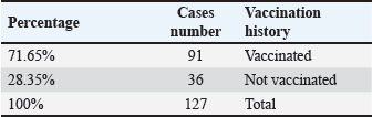The possible causes of the occurrence of canine parvovirus in vaccinated dogs are primary dose administration alone, delayed booster vaccination, lack of awareness regarding vaccination, and affordability of pet owners (Geetha and Selvaraju, 2021). Table 6. Distribution of recovered cases and died cases.