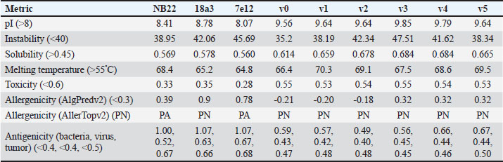 Open Vet. J.. 2025; 15(1): 348-387 Open Veterinary Journal, (2024), Vol. 15(1): 348-387 Research Article Computational insights in CD58 binding to ASFV CD2v and in silico optimization of nanobody designs against the interfaceAlbert Neil G. Dulay1, Richelle Mae E. Padilla2, Nyzar Mabeth O. Odchimar1 and Fredmoore L. Orosco1,3,4*1Department of Science & Technology, Virology and Vaccine Research Program, Industrial Technology Development Institute, Taguig, Philippines 2National Institute of Molecular Biology and Biotechnology, College of Science, University of the Philippines – Diliman, Quezon City, Philippines 3Department of Science and Technology, S&T Fellows Program, Taguig, Philippines 4Department of Biology, University of the Philippines, Manila, Philippines *Corresponding Author: Fredmoore L. Orosco. Department of Science & Technology, Virology and Vaccine Research Program, Industrial Technology Development Institute, Taguig, Philippines. Email: orosco.fredmoore [at] gmail.com Submitted: 04/11/2024 Accepted: 09/12/2024 Published: 31/01/2025 © 2025 Open Veterinary Journal