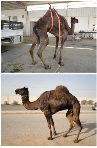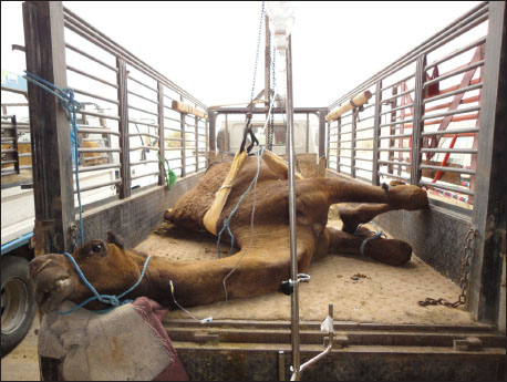 Fig. 9. Clinical presentation of a downer camel that was admitted for examination of lateral recumbency.