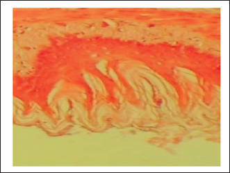 Fig. 4. Standard drug group (ranitidine) mild infiltration of leucocyte and less edema in the sub-mucosal layer.