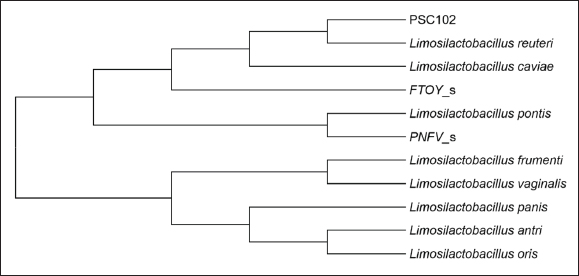 Fig. 3. Analysis of the phylogenetic tree of Limosilactobacillus reuteri PSC102 using ANI.