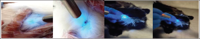 Fig. 3. Examination of a cat using a Wood’s Lamp U.V. pin light.