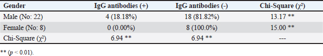 Table 2. The Validity of IgG antibodies in Toxoplasma serum samples infected horses in differentiation with gender.