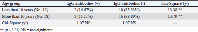 Table 3. Validity of IgG antibodies in Toxoplasma serum samples infected horses in differentiation with age variation.