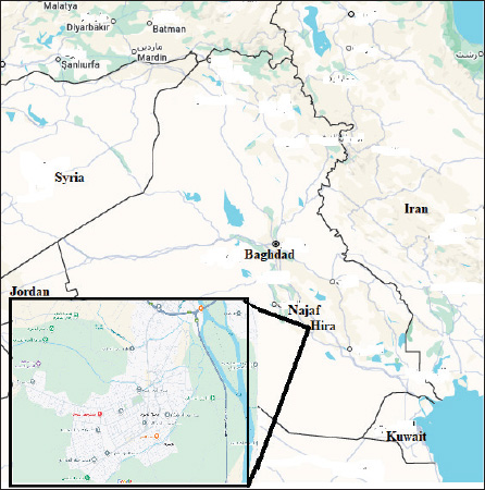 Fig. 1. Reveal the position of Hira at the Najaf governorate /Iraq.