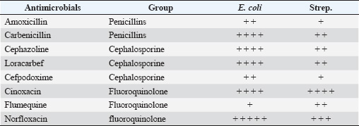 Table 2. Susceptibility of isolates to certain antimicrobials.