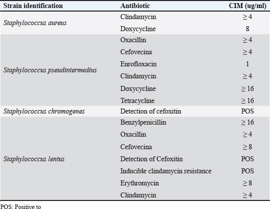 Table 2. Frequency of Staphylococcus spp. strains according to species and antimicrobial resistance.