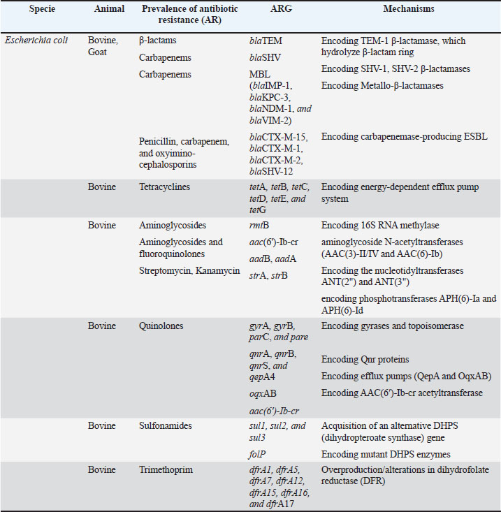 Open Vet. J.. 2025; 15(9): 3980-4006 Open Veterinary Journal, (2025), Vol. 15(9): 3980-4006 Review Article Antibiotic resistance in mastitis-causing bacteria: Exploring antibiotic-resistance genes, underlying mechanisms, and their implications for dairy animal and public healthShima Kazemzadeh1,2*, Olga Korneeva1, Sergey Shabunin3 and Mikhail Syromyatnikov1,41Laboratory of Metagenomics and Food Biotechnology, Voronezh State University of Engineering Technologies, Voronezh, Russia 2Department of Biochemistry and Biotechnology, Voronezh State University of Engineering Technologies, Voronezh, Russia 3FSBSI All-Russian Veterinary Research Institute of Pathology, Pharmacology and Therapy, Voronezh, Russia 4Department of Genetics, Cytology and Bioengineering, Voronezh State University, Voronezh, Russia *Corresponding Author: Shima Kazemzadeh. Laboratory of Metagenomics and Food Biotechnology, Voronezh State University of Engineering Technologies, 394036 Voronezh, Russia. Email: shimakazemzadeh [at] yahoo.com Submitted: 01/04/2025 Revised: 29/07/2025 Accepted: 12/08/2025 Published: 30/09/2025 © 2025 Open Veterinary Journal