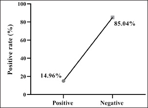 Fig. 1. Prevalence rate of colibacillosis using traditional diagnostics (total number of examined fecal samples=127).