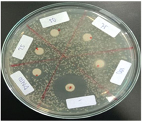 Fig. 2. Antibacterial activity test of Aeromonas hydrophila using the disk diffusion method. Bacterial growth was observed at all coconut oil concentrations, indicating that coconut oil does not exhibit bacteriostatic properties against A. hydrophila.
