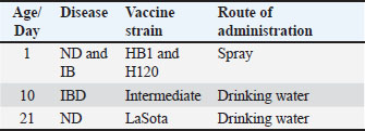 Table 2. Vaccination program used in the tested farms.