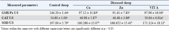 Table 7. Antioxidant enzyme levels in apparently healthy sheep and sheep suffering from trace element deficiency