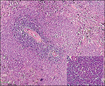 Fig. 4. Histological section of male rat spleen treated with L-arginine, stained with Hematoxylin and Eosin (H&E), showing villus structure at 10x magnification using light microscopy. DiscussionThis study investigated the effects of chronic L-arginine administration on inflammatory responses, hematological indices, physiological parameters, and histological changes of intestine and spleen in a rat model of enteritis. The results demonstrate that L-arginine induces significant intestinal inflammation, characterized by alterations in body weight, blood parameters, inflammatory biomarkers, and tissue morphology. The significant reduction in body weight and weight gain observed in the enteritis group aligns with previous findings that chronic inflammation and intestinal damage impair nutrient absorption and metabolism, leading to weight loss (Ebohon et al., 2020). Weight fluctuations act as a precise sign of overall health and the intensity of the inflammatory response. Haematological study indicated anemia-like characteristics in L-arginine-treated rats, evidenced by reduced RBC count, haemoglobin concentration, packed cell volume, and RBC indices. These alterations are likely attributable to inflammatory enteritis impacting erythropoiesis and perhaps leading to increased red blood cell destruction or loss (Weiss et al., 2019). IL-6 also controls iron and zinc levels by inducing hepcidin and zinc transporters, leading to anemia and hypozincemia in chronic inflammation (Nemeth et al., 2004; Liuzzi et al., 2005). In bone marrow, IL-6 promotes platelet production (Ishibashi et al., 1989). Neutrophils and monocytes play an important role in intestinal inflammation as they are actively recruited to inflamed tissue, where they help the immune system as well as the inflammatory response. Neutrophils maintain gut health by discarding bacteria that penetrate the epithelial barrier. Nevertheless, they perhaps exacerbate inflammation by the release of cytokines as well as reactive oxygen species (Kang et al., 2022). Monocytes differentiate to macrophages and dendritic cells, changing immune system physiology in mucous membranes and exacerbating chronic inflammation in circumstances such as inflammatory bowel disease (Liao et al., 2024; Lu et al., 2024; Long et al., 2024). Basophils show distinct function in the context of allergic inflammation that result in increased therapeutic potency, basophils can be recruited to sites of inflammation where they release histamine, cytokines, and other mediators that amplify immune responses (Siracusa et al., 2013). A significant decrease in basophil percentages, as observed in our enteritis model, might reflect their migration from the bloodstream into inflamed tissues, leading to peripheral blood basopenia. The observed non-significant changes in eosinophil counts, despite notable alterations in other white blood cell populations, likely reflect the specific immunopathological features of L-arginine-induced enteritis. This enteritis model may engage distinct immune regulatory pathways that predominantly recruit neutrophils and monocytes, unlike other chronic inflammatory models where basophils and eosinophils are actively involved. This differential recruitment could be due to the particular cytokine milieu or tissue microenvironment induced by L-arginine, which favours neutrophil- and monocyte-mediated responses over eosinophil or basophil activation. Further mechanistic studies would be needed to elucidate these immunoregulatory distinctions fully. Markers of serum inflammatory such as TNF-α, IL-6, and CRP were significantly increased, consistent with their established roles as mediators and biomarkers of intestinal inflammation (Neurath, 2014). The key role of cytokines is also highlighted by the fact that blockade of tumour necrosis factor is commonly used as a standard therapy for intestine bowel disease in the clinic (Danese and Fiocchi, 2011). In pathological conditions such as IBD, elevated TNF-α contributes to epithelial barrier dysfunction and tissue injury, making it a prime therapeutic target (Neurath, 2014). Thus, TNF-α is a key pro-inflammatory cytokine produced primarily by activated macrophages and plays a central role in initiating and sustaining the inflammatory cascade within the intestinal mucosa. It promotes leukocyte recruitment, activates endothelial cells, and induces the production of other cytokines and chemokines, thereby amplifying the immune response. IL-6 plays a central role in inflammation and immunity. Produced early at inflammation sites, it triggers the liver to produce acute phase proteins like CRP and serum amyloid A, while reducing others such as albumin (Heinrich et al., 1990). Prolonged high levels of serum amyloid A can cause amyloidosis, damaging organs (Gillmore et al., 2001). Thus, IL-6 is a pleiotropic cytokine involved in the acute phase response and regulation of immune cell differentiation and survival. Persistent elevation of IL-6 correlates with disease severity and progression in intestinal inflammatory disorders. C-reactive protein is a homopentameric acute-phase inflammatory protein that shows elevated expression through inflammatory cases such as some cardiovascular diseases, rheumatoid arthritis, and infection. There is evidence that CRP does more than just show when there is inflammation or an infection. It also plays a big part in controlling inflammatory processes. The main parts of inflammation and the body's reaction to infection that CRP helps with are the complement pathway, apoptosis, phagocytosis, release of nitric oxide, and production of cytokines (Sproston and Ashworth, 2018). Thus, CRP not only shows that the body is inflamed, but it also helps the body's defence system by encouraging complement activation and the opsonisation of germs and damaged cells. The amounts show how bad the inflammation is and can be used to predict how well a treatment will work for intestinal inflammation. Since t