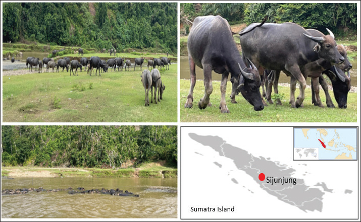 Buffalo (Bubalus bubalis) is a significant livestock species in Indonesia, which is used for both draught work and meat and milk production. In 2024, the buffalo population in Indonesia was recorded at 556,794 heads, with a total carcass production of 17,361.50 tons (Kementan, 2024). Currently, the Indonesian Ministry of Agriculture has officially registered nine swamp buffalo breeds as AnGR, namely, Gayo, Simeulue, Kuntu, Pampangan, South Kalimantan Kalang, East Kalimantan Kalang, Toraya, Moa, and Sumbawa (Prihandini et al., 2023). Additionally, the riverine buffalo breed Silangit has also been recognized as an AnGR in Indonesia. Among these, four buffalo breeds (Gayo, Simeulue, Kuntu, Pampangan) are bred on Sumatra Island. West Sumatra Province, on Sumatra Island, has a swamp buffalo population of 30,913 heads as of 2023. Sijunjung Regency is one of the regions in West Sumatra where buffalo breeding occurs, although it is experiencing a decline in population (Rias et al., 2020; Syaiful et al., 2020).