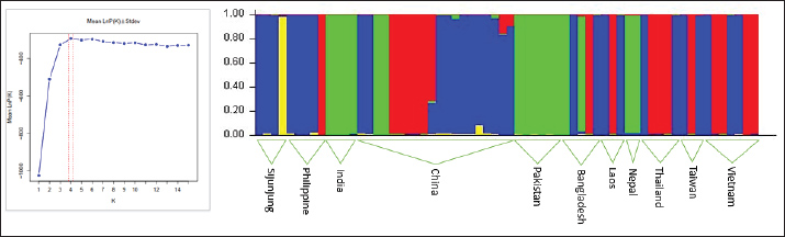 Earl, D.A. and Vonholdt, B.M. 2012. STRUCTURE HARVESTER: a website and program for visualizing STRUCTURE output and implementing the Evanno method. Conservation. Genet. Resour. 4, 359–361.