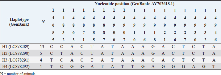 Table 2. Mutation site detection in each haplotype of swamp buffaloes (Bubalus bubalis) at Sijunjung Regency, West Sumatra, Indonesia.