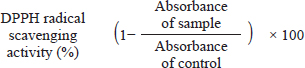 A portable pH meter (Orion model 301; Orion, Beverly, MA) with an electrode was used to measure the pH levels of the breast and thigh muscles after the animals were slaughtered. The DPPH radical scavenging activity of the aqueous supernatant obtained from raw breast and thigh meat was evaluated using the Blois method, as described by Alam et al. (2024), with some modifications. Using an SP-870 TURNER Barnstead US analyzer, the absorbance of the solution was determined at a wavelength of 517 nm. An equation was used to quantify the DPPH radical scavenging activity, and it is as follows: