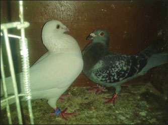 Fig. 1. A view of the Carrier pigeons used in the study. Materials and MethodsResearch area and experimental designSix clinically healthy male Carrier pigeons, 1.5 years old and weighing 350–400 g, with no pathological findings upon genital examination, were used in this study. Animals were brought to the Fırat University Animal Hospital between May and October 2024. Animal welfare principles were strictly observed throughout the study. Pigeons were housed in individual cages and fed with high-quality commercial feed. Water was provided ad libitum. The pigeons were maintained under standard environmental conditions, including a controlled temperature of 22°C ± 2°C and a 12:12 hours light/dark cycle. For ethical reasons, only pigeons whose owners consented to participate were included in the study. All owners provided signed informed consent forms before the experiment. We conducted a retrospective power analysis using G*Power (version 3.1) to assess the statistical robustness of our dataset. For two-tailed Pearson correlation tests (α=0.05, n=6), the achieved power was approximately 0.15 for a large effect size (r=0.50) and 0.08 for a medium effect size (r=0.30). For two-tailed paired t-tests (α=0.05, n=6), the achieved power was approximately 0.36 for a large effect size (d=0.80) and 0.17 for a medium effect size (d=0.50). Semen collection and analysisThe abdominal massage technique was used to collect semen from male pigeons (Cheng et al., 2002; Rakha et al., 2025). Six male Carrier pigeons were used in this study. Between May and October, semen was collected once a month from each pigeon brought to the animal hospital. The ejaculates were individually evaluated to eliminate the uncertainty caused by pooling and to accurately determine which bird had better sperm quality. After checking for contamination with blood, feces, or uric acid, the samples were evaluated. To minimize stress and potential negative effects during semen collection, particular attention was paid to factors such as the timing of collection and the personnel involved in the procedure. The individual evaluation was performed for each ejaculate. Semen volume was determined by aspirating it from the cloaca using an automatic pipette (Brand, USA). For motility analysis, a clean microscope slide was first placed on a heating stage (Reichert, Austria) maintained at 37°C. Motility was evaluated subjectively, and to standardize the assessment, a 5 µl semen sample was diluted with 95 µl of Ringer’s solution (9 g NaCl, 0.3 g KCl, 0.33 g CaCl2, and 0.2 g NaHCO3 dissolved in 1 l of distilled water), which served as a semen extender, then covered with a coverslip and examined using a digital microscope with an LCD screen (Celestron, USA) at 10 × 40 magnification (Blesbois, 2007; Wannaratana et al., 2021). Semen concentration was calculated using the hemocytometric method with a hemacytometer (Marienfeld Superior, Germany) (Aksu et al., 2016). The rate of membrane integrity was determined by examining smears prepared from semen samples stained with eosin-nigrosin stain, which was prepared using 1.67 g eosin Y, 10 g nigrosin, and 2.9 g sodium citrate in 100 ml distilled water (Pabuççuoğlu, 1994; Sharma and Agarwal, 2021; Shetty and Kanna, 2023). The proportion of abnormal spermatozoa in semen was also determined using the same smears prepared by the eosin-nigrosin staining method (Hafez, 1987; Bearden and Fuquay, 1992). Statistical analysisAll statistical analyses were performed using the statistical software R version 4.1.2 (The R Foundation for Statistical Computing, Vienna, Austria). The study was designed as an observational experiment with repeated semen collections from six adult male pigeons once per month between May and October (six repeated measures per individual). The statistical analysis aimed not to compare groups but to evaluate the relationships among semen quality traits. Therefore, correlation analyses were conducted. Before analysis, data were checked for normality using the Shapiro–Wilk test. Pearson’s correlation coefficients (r) were calculated for normally distributed variables, while Spearman’s rank correlation was used otherwise. Numerical variables were presented as means, and categorical variables were expressed as percentages (%). The volume and concentration of semen obtained from pigeons were analyzed as mean values. Motility values, as well as abnormal sperm and membrane integrity ratios, were analyzed as percentages (%). Pearson’s correlation analysis was used to evaluate the relationships between spermatological parameters. Correlation coefficients (r) were calculated, and statistical significance was set at p < 0.05, p < 0.01, and p < 0.001 (Petrie and Watson, 2013). Ethical approvalThis study was approved by the Local Ethics Committee of Fırat University Animal Experiments with the session number 2024/07-06 dated 04.04.2024, with the decision that an ethics committee certificate is not required. ResultsThe volume of semen obtained from Carrier pigeons ranged from 7.25 to 11.25 µl, with an average of 9.58 ± 1.62 µl, as presented in Figure 2. Figure 3 shows the total motility values of the semen obtained from carrier pigeons, ranging from 67.50% to 72.50%, with a mean value of 69.67% ± 1.89%. Semen concentration, as demonstrated in Figure 4, ranged from 3176.75 × 106 to 4079.00 × 106 sperm ml−1, and the average concentration was calculated as 3630.25 ± 388.26 × 106 sperm ml−1. The membrane integrity results (Fig. 5) varied between 65.50% and 81.00% with a mean value of 73.58 ± 5.61. Abnormal spermatozoa (Fig. 6) were evaluated in two categories: head and tail abnormalities. Head abnormalities ranged from 5.16% to 7.83%, with an average of 6.74% ± 1.00%, whereas tail abnormalities ranged from 7.33% to 10.66%, with a mean of 8.72% ± 1.34%. The overall abnormal sperm rate varied between 14.16% and 17.00%, and the average abnormality rate was determined to be 15