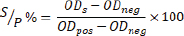 ODs=optical density of the sample, and ODpos=the optical density of the positive control, and ODneg=optical density of the negative control.