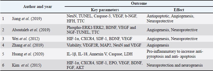 Table 2. Therapeutic effects or outcome using hypoxic preconditioning.