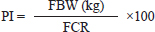Growth performance measurementAll chickens were weighed each week collectively using a TM-A 150-kg scale (Altraman, West Jakarta, Indonesia). Feed and drinking water residues were recorded every morning, starting from the treatment period, before feed was added and drinking water was changed. The final body weight (FBW) of broilers was recorded after a 12-hour feed withdrawal, while water remained available for each replicate group. Average daily feed intake (ADFI) was determined by recording the feed consumed per bird each day in grams, and average daily gain (ADG) was calculated as the daily increase in BW (Daniel et al., 2025). The average daily water intake (ADWI) was calculated by dividing the total drinking water consumption from day 8 to day 28 by the number of experimental days. Meanwhile, the water-to-feed ratio (WFR) was determined by dividing the total water consumption by the total feed intake during the rearing period (days 8–28). The survival rate referred to the percentage of animals that remained alive throughout the rearing period. The feed conversion ratio (FCR) was determined using the formula total feed intake (g)/total BW gain (g) (Eid et al., 2025). The chicken performance index (PI) was calculated using the formula by Abd Abd El-Hack et al. (2025).