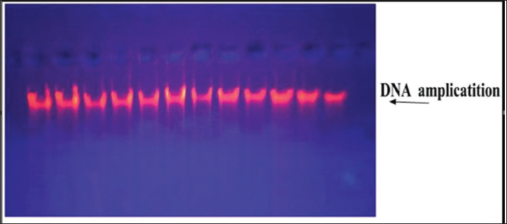 Fig. 2. Gel electrophoresis of genomic DNA extraction from bacteria, 1% agarose gel at 5 Vol/cm for 30 minutes.