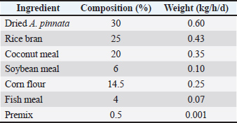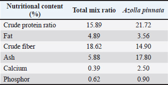 Table 2. Nutritional content of the total mix ration and Azolla pinnata.