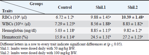 Open Vet. J.. 2026; 16(1): 88-95 Open Veterinary Journal, (2026), Vol. 16(1): 88-95 Review Article The physiological effects of administering different concentrations of Shilajit to Awassi lambs and their impact on productive trait and blood parameters and some biochemical measurementsHanan Waleed Kasim Agwaan*Department of Animal Production, College of Agriculture & Forestry, University of Mosul, Mosul, Iraq *Corresponding Author: Hanan Waleed Kasim Agwaan. Department of Animal Production, College of Agriculture & Forestry, University of Mosul, Mosul, Iraq. Email: hanan_aqwaan [at] uomosul.edu.iq Submitted: 28/09/2025 Revised: 03/12/2025 Accepted: 19/12/2025 Published: 31/01/2026 © 2025 Open Veterinary Journal