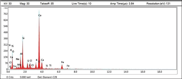 DLS showed that the average size distribution range of ChNPs was 20.1–75.2 nm. The results of the elemental EDAX analysis are displayed in Table 4 and Figure 3. Meanwhile, the XRD analysis showed a stronger peak at a maximum reflection at 13.1 (32.2 count/s) (Fig. 4).