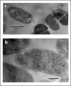 Fig. 5. Treated and untreated Escherichia coli under an electron microscope.