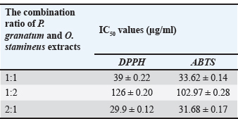 Table 3. Antioxidant activity of the combined extracts at varying ratios.