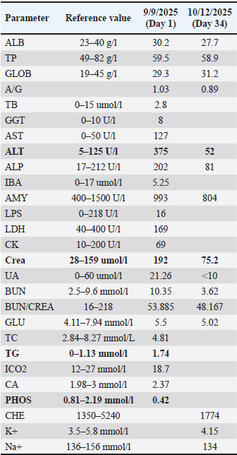 Table 2. Serum biochemical profile of a three-year-old male Shih Tzu diagnosed with canine rickettsiosis in Cebu, Philippines.