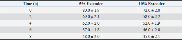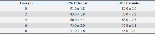Table 3. Progressive motility (%) of Dorper ram semen stored at room temperature (≈25°C) (n=8).