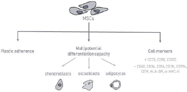 AbstractMesenchymal stem cells (MSCs) are multipotent, which is defined by their ability to self-renew while maintaining the capacity to differentiate into a certain number of cells, presumably from their own germinal layer. MSCs therapy is based on their anti-inflammatory, immunomodulatory (immunosuppressive), and regenerative potential. This review aims to provide a clinical overview of the MSCs potential as a therapeutic option for orthopedic diseases in dogs. A total of 25 clinical studies published in the scientific literature in the last 15 years on various diseases will be presented: semitendinosus myopathy, supraspinatus tendinopathy, cruciate ligament rupture, bone fractures and defects, and also osteoarthritis (OA). All articles involved in this study include only diseases that have naturally occurred in canine patients. MSCs therapy in the veterinary orthopedic field has great potential, especially for OA. All studies presented promising results. However, MSCs bone healing capacity did not reveal such favorable outcomes in the long term. Besides, most of these clinical studies did not include immunohistochemistry, immunofluorescence, and histopathology to confirm that MSCs have differentiated and incorporated into the injured tissues. This review summarizes the current knowledge of canine MSCs biology, immunology, and clinical application in canine orthopedic diseases. Despite the positive results in its use, there is still a lack of defined protocols, heterogeneous samples, and concomitant medications used with MSCs therapy compromising therapeutic effects. Further studies are needed in the hope of overcoming its limitation in upcoming trials. Keywords: Bone fractures, Cruciate ligament rupture, Osteoarthritis, Semitendinosus myopathy, Supraspinatus tendinopathy. IntroductionRegenerative medicine aims to restore the organism’s function and structure using its own biological mechanisms (Bogers, 2018; Dias et al., 2019). Over the last few years, new and promising biological therapies have emerged, contributing to the therapeutic management of orthopedic, inflammatory, and immune pathologies (Ogliari et al., 2014; Jiménez and Guerrero, 2017; Dias et al., 2019). The main focus of these cellular therapies is mesenchymal stem cells (MSCs), defined as multipotent cells of non-hematopoietic origin, with self-renewal capacity and present in connective tissues throughout the body (De Witte et al., 2016; Zhao et al., 2016; Dias et al., 2019). These cells were first reported in the literature by Friedenstein et al. (1968). Since then, the interest in their therapeutic potential has grown, leading to the emergence of innovative approaches (Friedenstein et al., 1968). One alternative source of cells for cartilage, muscle, tendon, or bone regeneration is MSCs, which are readily available and harvestable from different tissues, hold excellent proliferation ability, and can differentiate into various cell types in the body, such as osteoblast and chondroblasts (Freitag et al., 2016; Reissis et al., 2016). Whereas some tissues can recover their original or almost original strength and stiffness, other tissues, such as cartilage, have a poor healing capacity, leading to the necessity of searching for new alternative therapies (Carr and Canapp, 2016). Regenerative medicine has been used to stimulate healing in areas that have not responded to more conventional treatments, promoting injured tissue heal to their original or near-original condition (Carr and Canapp, 2016). Several authors have studied MSCs therapy alone or in combination with platelet-rich plasma (PRP), plasma-rich in growth factors (PRGF) or hyaluronic acid, and have reported of very satisfactory results in human and veterinary orthopedic diseases. Moreover, dogs can serve as experimental or translational clinical study models for tendons, muscle, cartilage, and bone repair in humans (Hoffman and Dow, 2016). They naturally develop diseases that share a close analogy with human conditions, such as osteoarthritis (OA), making them good preclinical models and providing valuable information for human therapies (Sasaki et al., 2019). This review aims to provide a clinical overview of the MSCs potential as a therapeutic option for orthopedic diseases in dogs, particularly in supraspinatus tendinopathy (ST), semitendinosus myopathy cruciate ligaments rupture, bone fractures and defects, and also OA. Canine MSCsMSCs biology and immunologyMSCs have a great self-renewal capacity while maintaining their multipotency (Zhao et al., 2016; Arnhold et al., 2019; Dias et al., 2019). Their high proliferative and self-renewal capacity allows obtaining the number of cells necessary for clinical application (Paterson et al., 2018; Arnhold et al., 2019). These cells can be isolated from the embryonic attachments, and in the adult individual, it can be isolated from a large variety of tissues, such as bone marrow (BM), umbilical cord, adipose tissue (AT), placenta, amnion, dental pulp, periosteum, among others (Kern et al., 2006; Klingemann et al., 2008; Webster et al., 2012). MSCs present remarkable pleiotropic properties, such as anti-apoptosis, angiogenesis, growth factor production, antifibrosis, and the ability to migrate toward injury sites through chemotaxis (Arnhold et al., 2019; Ayala-cuellar et al., 2019; Dias et al., 2019). In veterinary medicine, they are frequently obtained from AT and BM (Gonçalves et al., 2014; Bogers, 2018; Arnhold et al., 2019). This procedure usually requires surgical intervention, using general anesthesia and appropriate aseptic care. Although many of the alternatives are quite invasive, BM samples’ harvesting presents a higher technical difficulty (Carvalho et al., 2012; Sullivan et al., 2016). Some studies have even demonstrated a higher proliferation ability for MSCs derived from AT than BM (Kang et al., 2012; Russell et al., 2016; Sasaki et al., 2019). Other authors suggest that BM has a more significant ost