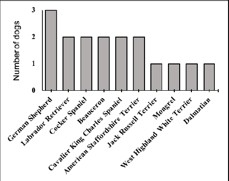 Fig. 1. Distribution of dog breeds diagnosed with copper-associated hepatitis between May 2010 and March 2017 in a French Veterinary Referral Center.
