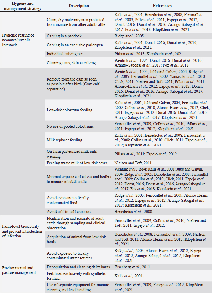 Table 2. Description of HMS for paratuberculosis control in dairy cattle, extracted from the selected studies (n=26) of the SystRev.