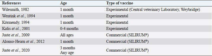 Table 4. Description of VS for paratuberculosis control in dairy cattle, extracted from the selected studies (n =26) of the SystRev.