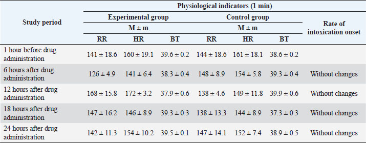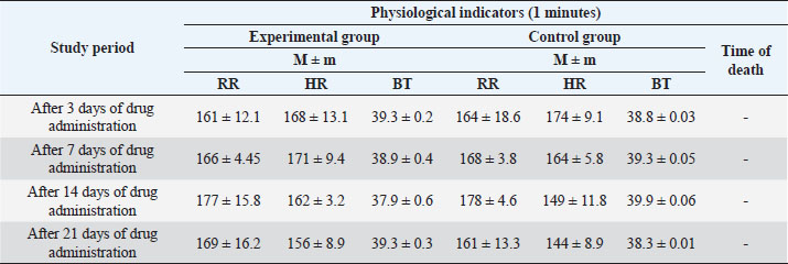 Table 2. Study of chronic toxicity of a veterinary substance on rabbits (n=5).